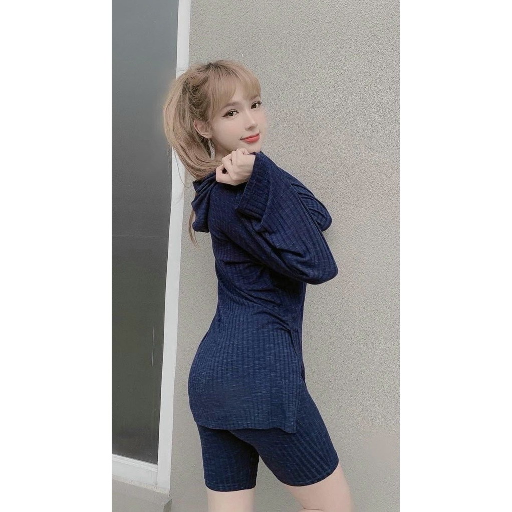 Giới thiệu Set bộ nữ chat áo nón phối quần ngố đùi áo hai dây Yenlinhstore vải len tăm cao cấp S015