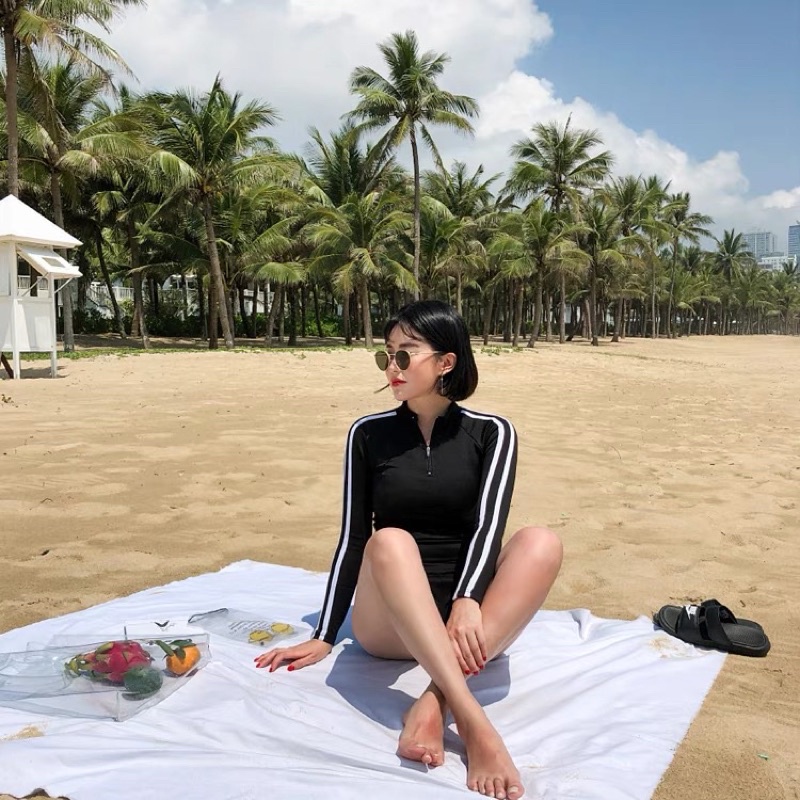 Giới thiệu ÁO BƠI TAY DÀI KÍN ĐÁO CHE BỤNG CHỐNG NẮNG THUN LẠNH KÈM MÚT