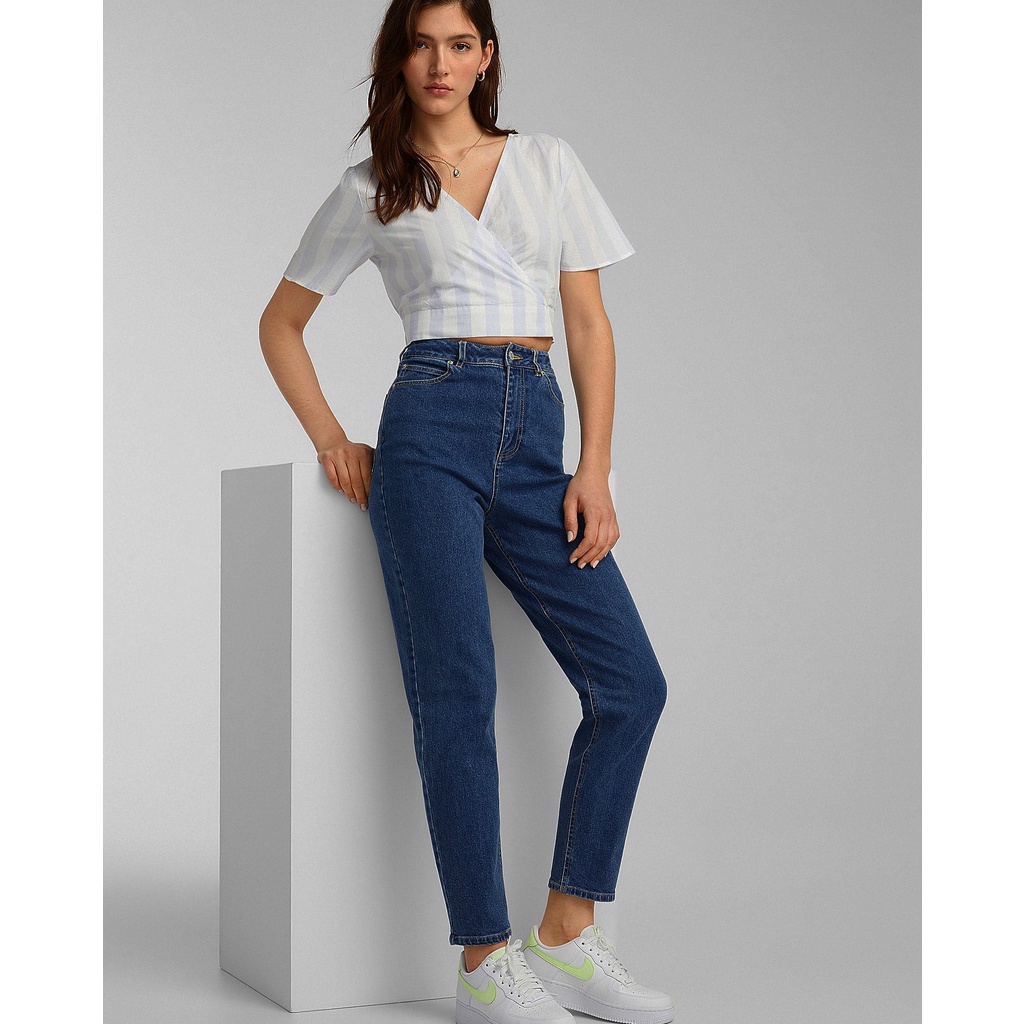 Giới thiệu Quần Mom Jeans Nữ Lưng Cao Form Dáng Baggy Fit Màu Hot Xanh Đậm Classic Blue M-03