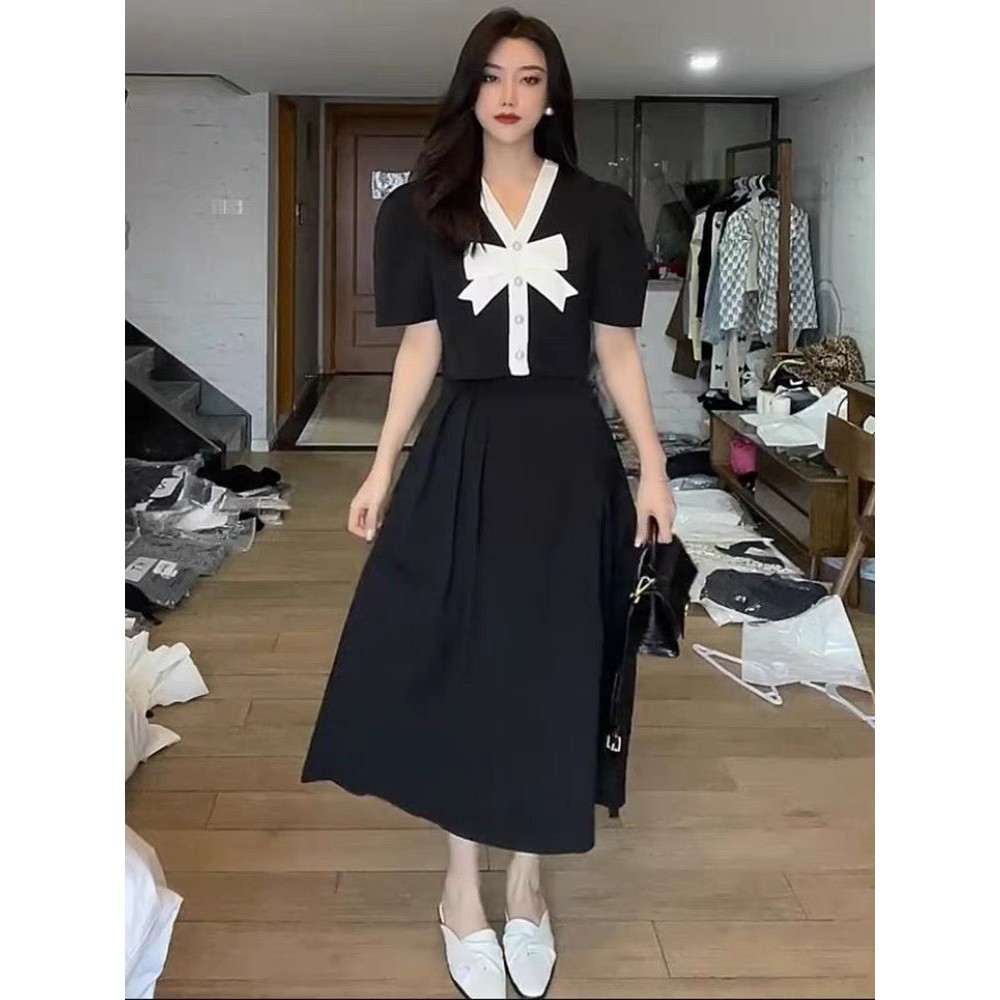 Giới thiệu [HÀNG QCCC] - SET váy ulzzang tiểu thư cổ nơ cúc ngọc - B50 - jannahouse
