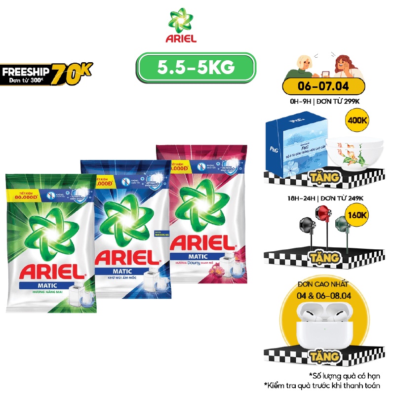 Nhà cửa & Đời sống > Dụng cụ chăm sóc nhà cửa > Phụ kiện giặt là > Nước giặt || Bột Giặt Ariel Nhiều Mùi Hương Túi 5Kg/5.5Kg