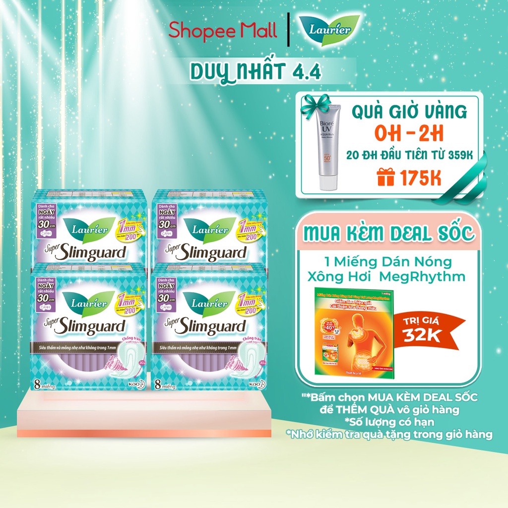 Combo 4 gói BVS Laurier siêu mỏng bảo vệ 1mm 30cm 8 miếng