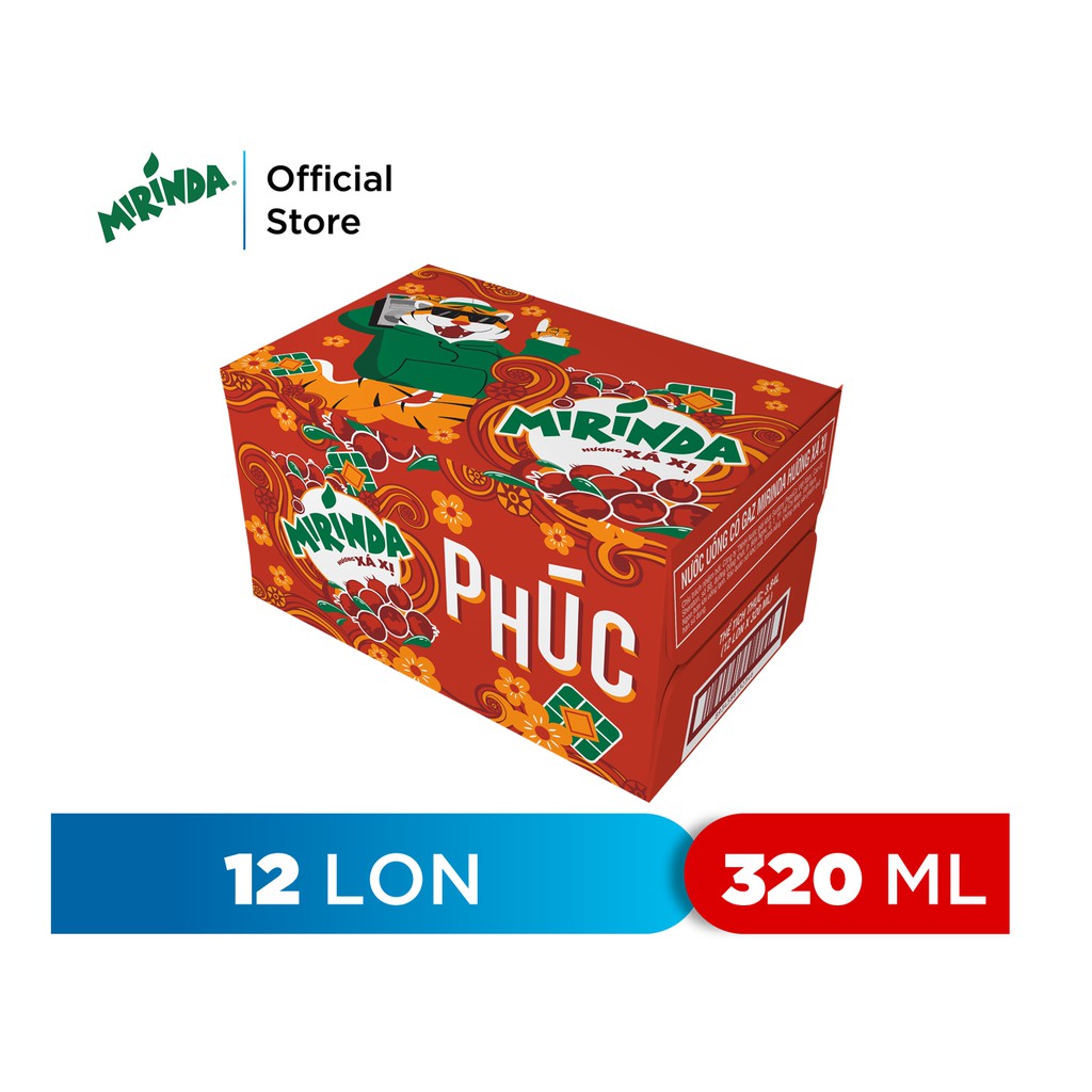 Giới thiệu [Mã GRO1APR giảm 20K đơn 150K] Thùng 12 Lon Nước Ngọt Có Gas Mirinda Xá Xị (320ml/Lon) - Phiên Bản Tết