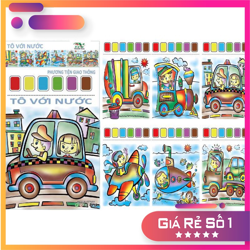 Bộ 6 tranh tô màu nước cho bé (có kèm màu, cọ)