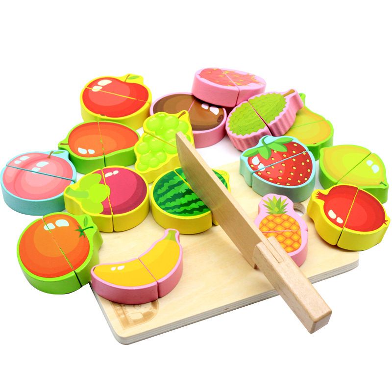 Bộ đồ chơi cắt ghép rau củ quả bằng gỗ với nhiều màu sắc ngộ nghĩnh đáng yêu giúp bé vừa học vừa chơi, dạy bé cách cầm dao bằng tay phải, cách phân biệt đâu là cán dao, đâu là lưỡi dao, các loại quả. Đặc biệt, ở từng loại quả đều có nam châm dính ở giữa quả cho bé cắt và ghép lại dễ dàng