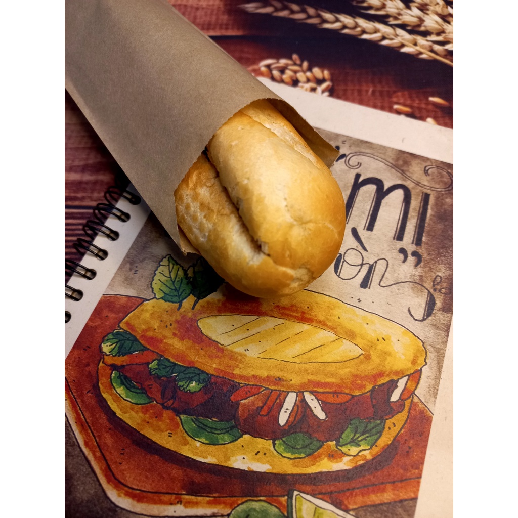 Chất Liệu: Giấy thực phẩm Kraft ĐL 40 gms, đã được kiểm nghiểm đảm bảo VSATTP và cam kết bởi đơn vị sản xuất