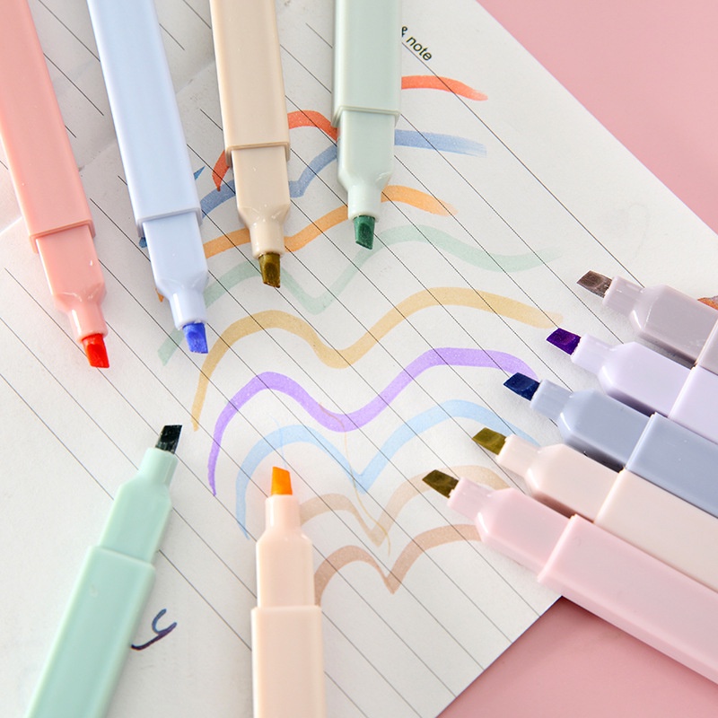 Bút highlight dạ quang Pennie 6 màu pastel đánh dấu retro xinh xắn thân vuông Set 06 bút highlight pastel thân vuông Pennie đánh dấu màu xinh xắn