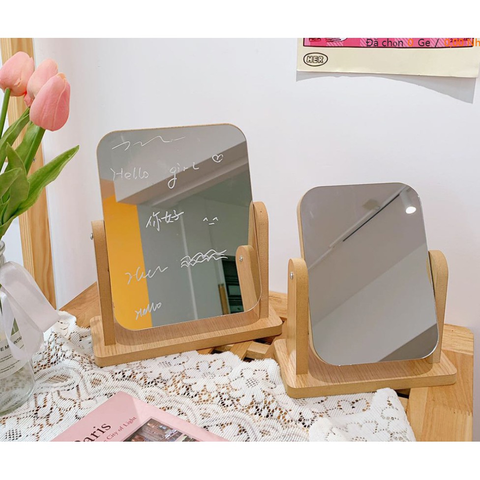 Giới thiệu [TẶNG KÈM BÚT] GƯƠNG GỖ XOAY 360• ĐỂ BÀN TRANG TRÍ