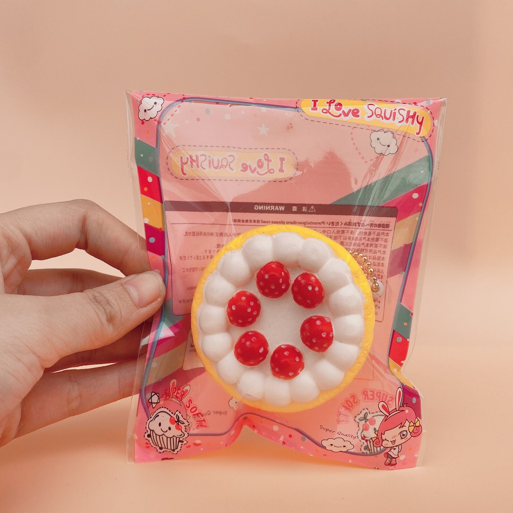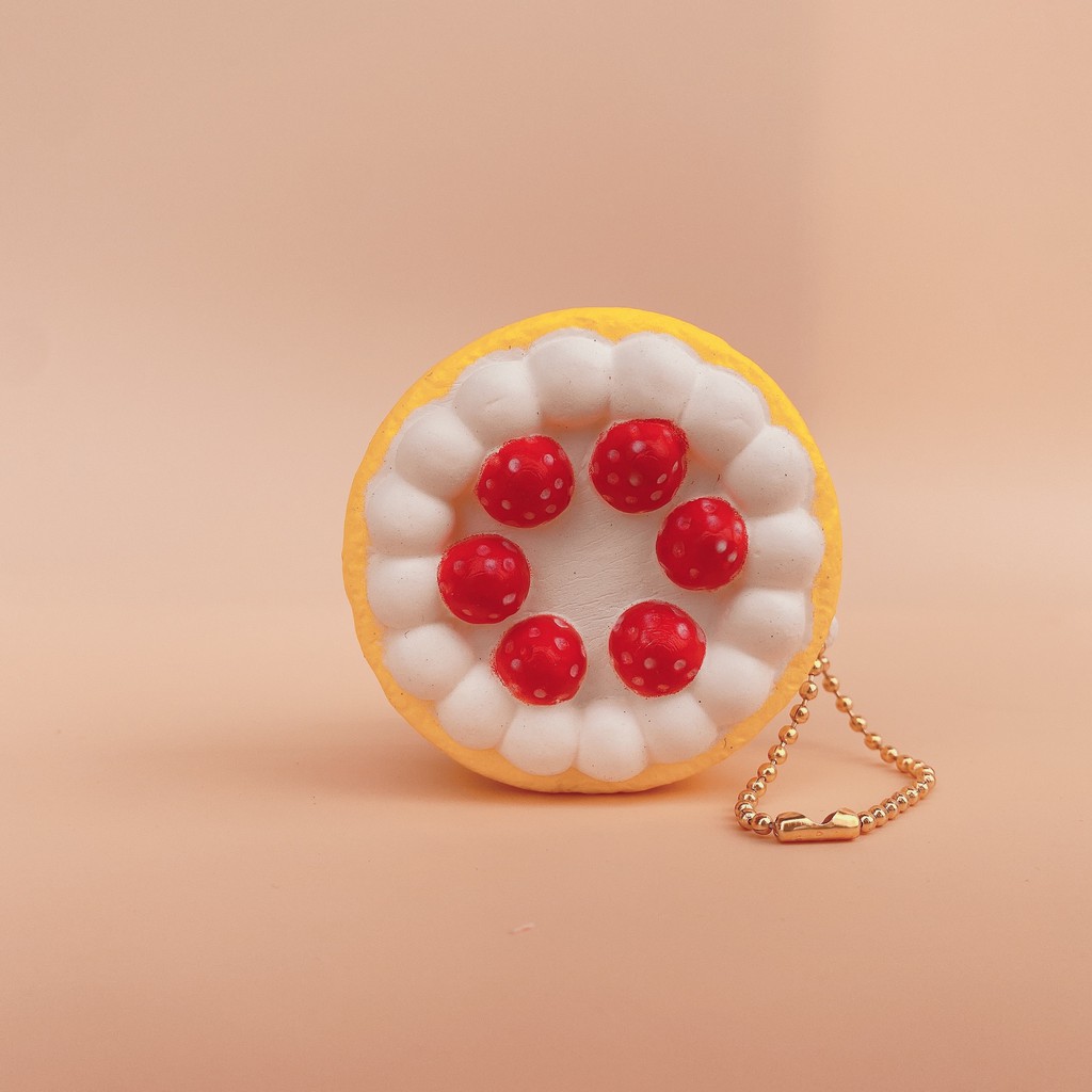 Giới thiệu Squishy bánh Gato kem 6 trái dâu siêu chậm tăng có móc khóa