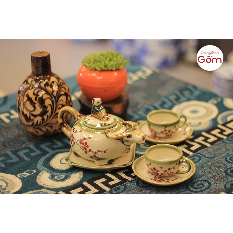 Bộ trà con trâu Bát Tràng là món quà ý nghĩa mà những người thợ gốm đem tặng cho đời với mong muốn: "Tất cả những nỗ lực và cố gắng của chúng ta hôm nay, rồi sẽ được đáp đền xứng đáng. Uống trà không hẳn chỉ là thú vui tao nhã nữa, nó là ý thức nhắc nhở chúng ta về sự cố gắng, không ngừng cố gắng mà vươn lên. Là một động viên tinh thần đầy ý nghĩa. Bộ ấm chén gồm: 1 ấm, 6 chén 7 đĩa kê #amchen #amchenBatTrang #amchencontrauvehoadao