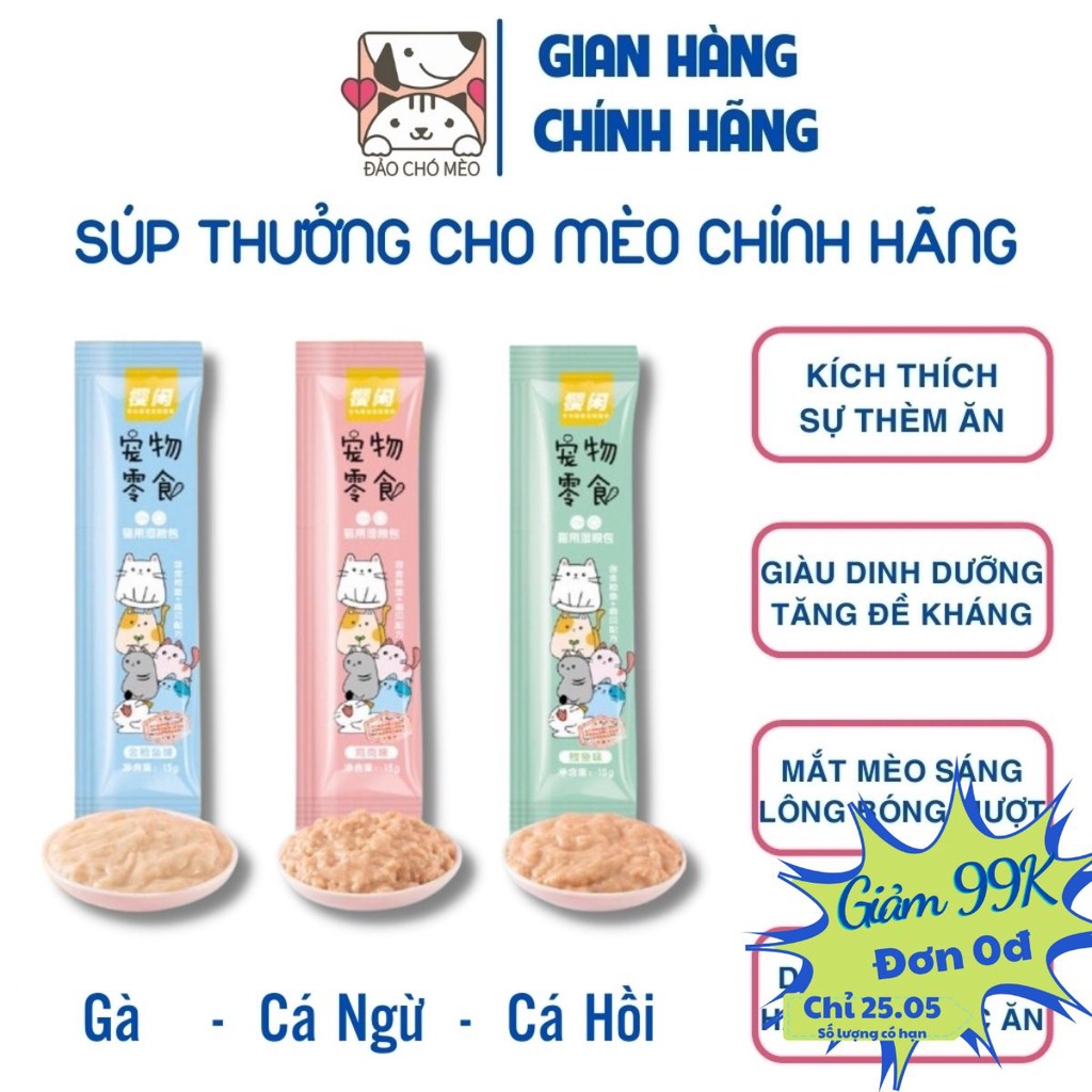 Giới thiệu [Mã SKAMLTSM9 giảm 10% đơn 99K] Súp thưởng cho mèo cún siêu rẻ siêu ngon bổ 3 vị cá hồi, cá ngừ và thịt gà - Đảo Chó Mèo