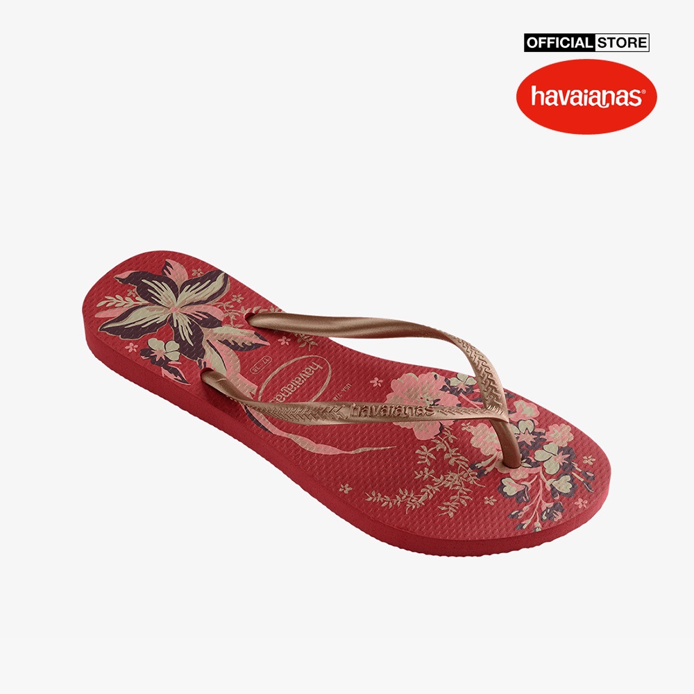 Tên thương hiệu: Havaianas Thương hiệu Havaianas là hiện thân đầy màu sắc của một nền văn hóa Brazil sống động: tinh thần tự do, niềm say mê cuộc sống và bản năng kết hợp những điều không thể. Thiết kế đầu tiên của Havaianas là mẫu giầy vải bình dân dành cho những người trồng cà phê ở Brazil vào năm 1907, sau đó thương hiệu phát triển không ngừng và hiện đang cung cấp hơn 20 dòng sản phẩm trên toàn thế giới, bán được hơn 162 triệu đôi dép tông mỗi năm tại hơn 80 quốc gia. Chất liệu: Cao su cao cấp Form Slim thanh lịch Kiểu dáng quai kẹp dễ dàng thao tác xỏ/tháo Thiết kế in hoa trên mặt dép tinh tế Phong cách phóng khoáng, hiện đại, đa năng Đế có rãnh chống trơn trượt, tăng độ bám Sản xuất tại: Brazil