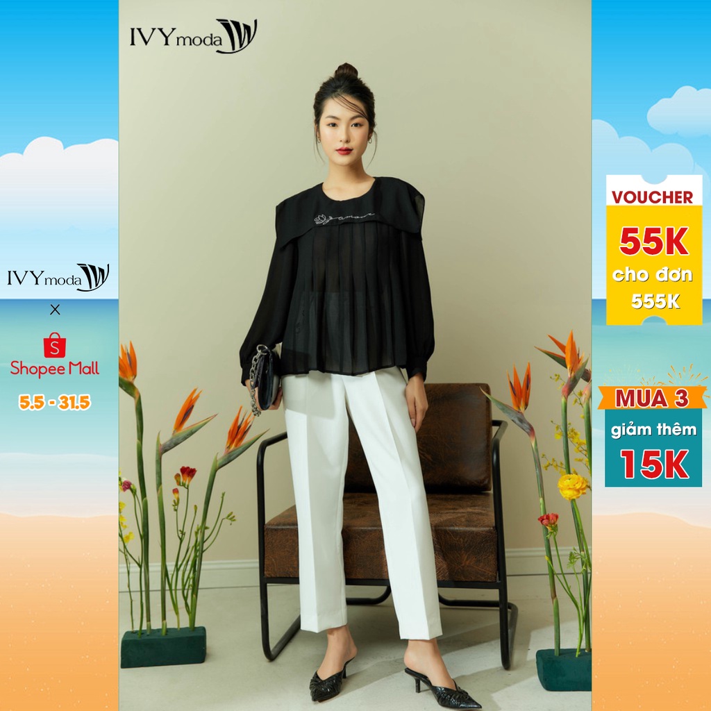 Bảng tư vấn SIZE Nữ (Cân nặng- Chiều cao) Size S – cân nặng ( 40-48)kg , Chiều cao (150-160)cm Size M – Cân nặng (48-55), Chiều cao (155-162) Size L – Cân nặng (55-60), Chiều cao (158-165) Size XL – Cân nặng (60-65), Chiều cao (160-165) Size XXL – Cân nặng (64-72), Chiều cao ( 158-167) Bảng tư vấn SIZE Size S – Vai (36)cm, Ngực ( 82)cm, Eo ( 64)cm, Mông(88)cm Size M – Vai (37), Ngực ( 86), Eo ( 68), Mông(92) Size L – Vai (38), Ngực ( 88), Eo ( 72), Mông(96) Size XL – Vai (39), Ngực ( 92), Eo ( 76), Mông(100) Size XXL – Vai (40), Ngực ( 96), Eo ( 80), Mông(104) ------------------------------------------- Thành lập từ tháng 10/2005, hiện tại IVY moda đã trở thành thương hiệu thời trang số 1 trên thị trường thời trang Việt Nam. Tính đến thời điểm năm 2019, IVY moda đang có sự đóng góp từ hơn 3000 nhân sự tại các khối: Văn phòng, Nhà máy và hệ thống 77 Cửa hàng trên toàn quốc, 7 cửa hàng Đại lý ------------------------------------------ Lưu ý QUAN TRỌNG: Bảng size chart chỉ mang tính chất tham khảo, tùy thuộc vào số đo cơ thể mỗi người và chất liệu vải khác nhau sẽ có sự chênh lệch nhất định từ 1 - 2cm CAM KẾT 100% hàng chính hãng từ IVY moda Đội ngũ CSKH của IVY luôn tư vấn tận tâm, hỗ trợ nhiệt tình nhất với khách hàng. ***IVY moda Official Store cảm ơn quý khách hàng đã tin yêu sản phẩm và mua hàng tại shop ! IVY moda TUYÊN NGÔN THỜI TRANG CỦA TÔI.