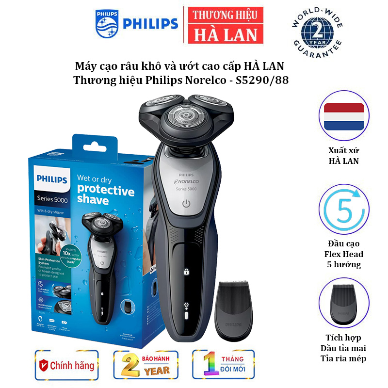 Giới thiệu Máy cạo râu khô và ướt Philips Norelco S5290/88, Series 5000 có đầu tỉa để tỉa tóc mai và ria mép - HÀNG NHẬP KHẨU