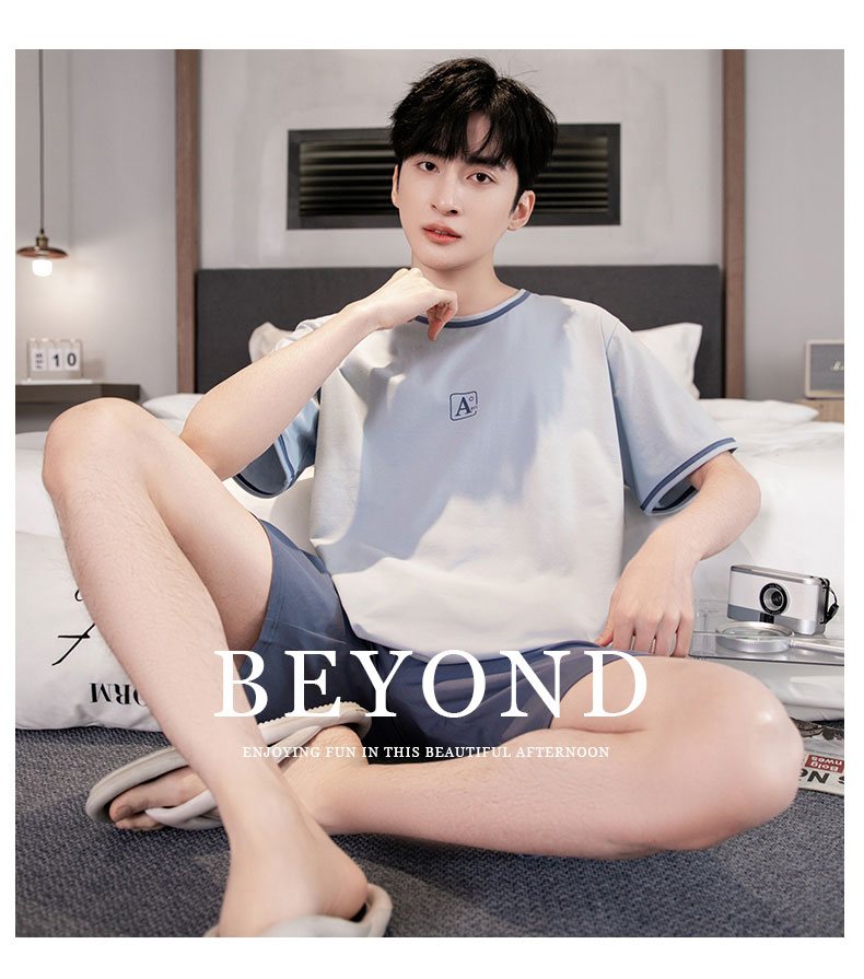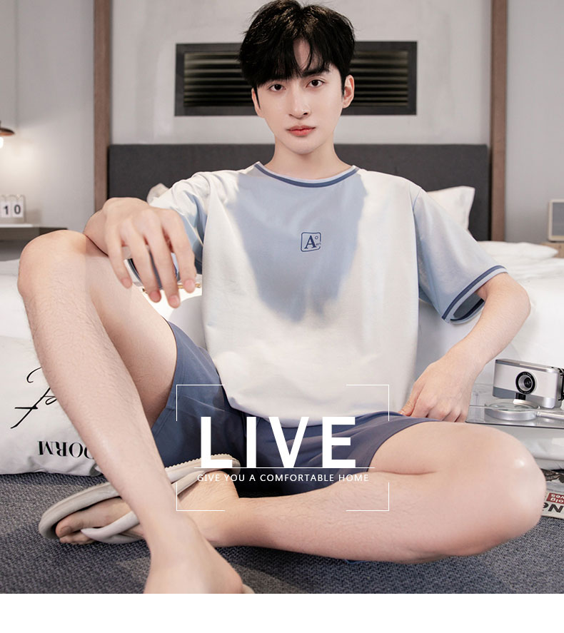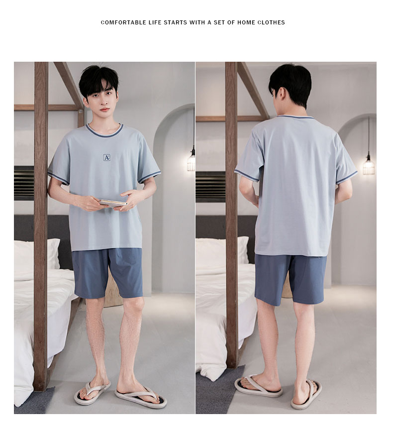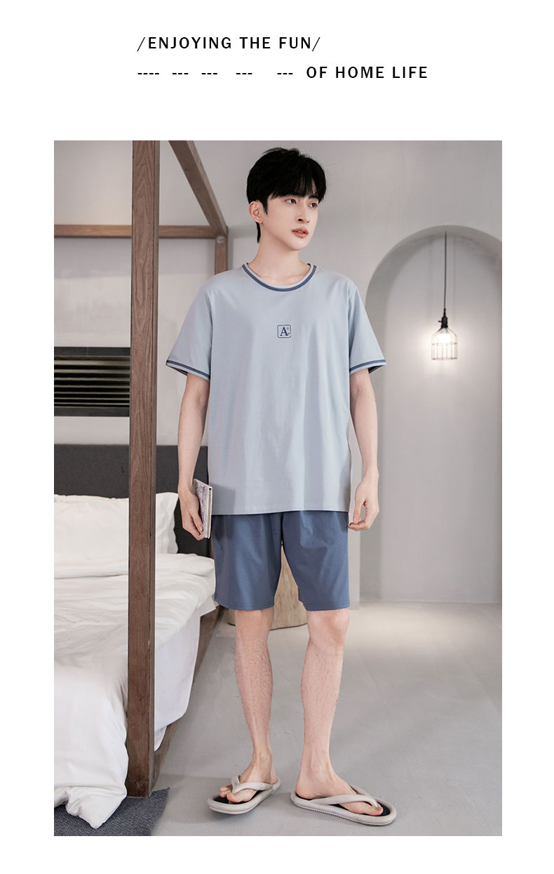 Đồ mặc nhà nam trẻ trung với chất liệu vải thun cotton, mềm mại, thoáng mát và thấm hút mồ hôi.