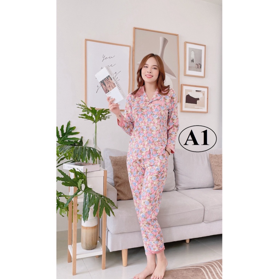 Giới thiệu đồ bộ mặc nhà nữ,bộ ngủ lụa dài tay pizama cao cấp hiệu cover (có video) hoa nhí