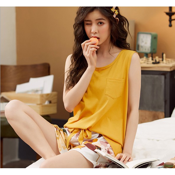Bộ Mặc Nhà Nữ Mùa Hè Ba lỗ Chất Cotton (Ảnh +Video)