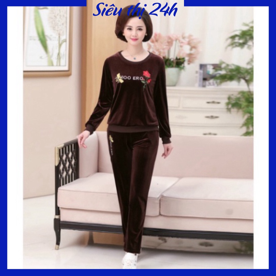 Giới thiệu Đồ bộ mặc nhà nữ, quần áo trung niên cho mẹ Siêu thị 24 giờ, chất liệu Nhung dày dặn, form vừa xinh ĐBH.20