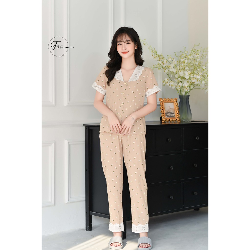 Giới thiệu Bộ Mặc Nhà Pyjama Chất Đũi Tea Store Họa Tiết Hoa Nhí