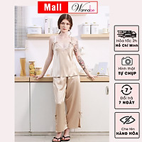 Đồ bộ mặc nhà WANNABE BDS41 đồ bộ quần dài phối áo 2 dây cúp ngực viền ren gợn sóng mang lại vẻ gọn gàng nữ tính