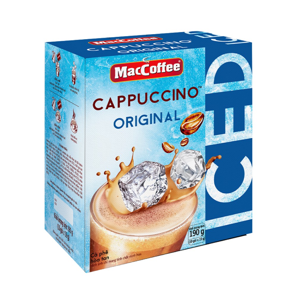 MacCoffee tự hào ra mắt 2 sản phẩm thuộc dòng cafe Cappuccino béo ngậy thơm ngon. MacCoffee Iced Cappuccino truyền thống Còn gì tuyệt vời hơn khi được thưởng thức ngay một ly Cappuccino thơm ngon có lớp bọt kem béo ngậy, lần đầu tiên xuất hiện tại Việt Nam.