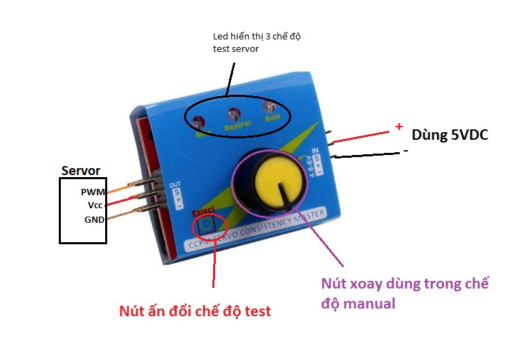 Module mạch Test SERVO S812Giới thiệu sản phẩm Như tên gọi, sản phẩm dùng để test servor Module nhỏ gọn, chỉ cần cắm theo vị trí chân đã có trên module là test được rất dễ dàng Module có 3 chế đ...