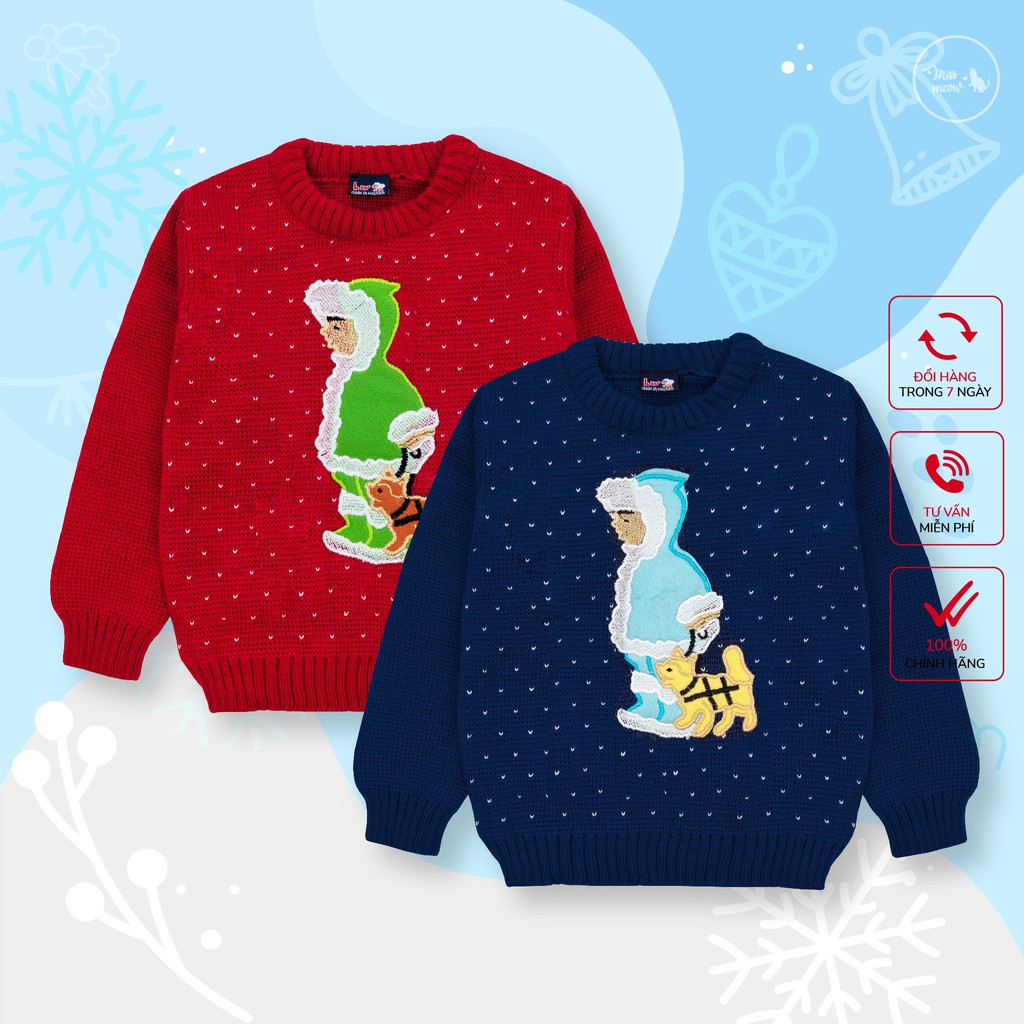 [made in vietnam]Áo len bé trai, áo len trẻ em thêu em bé dắt cún