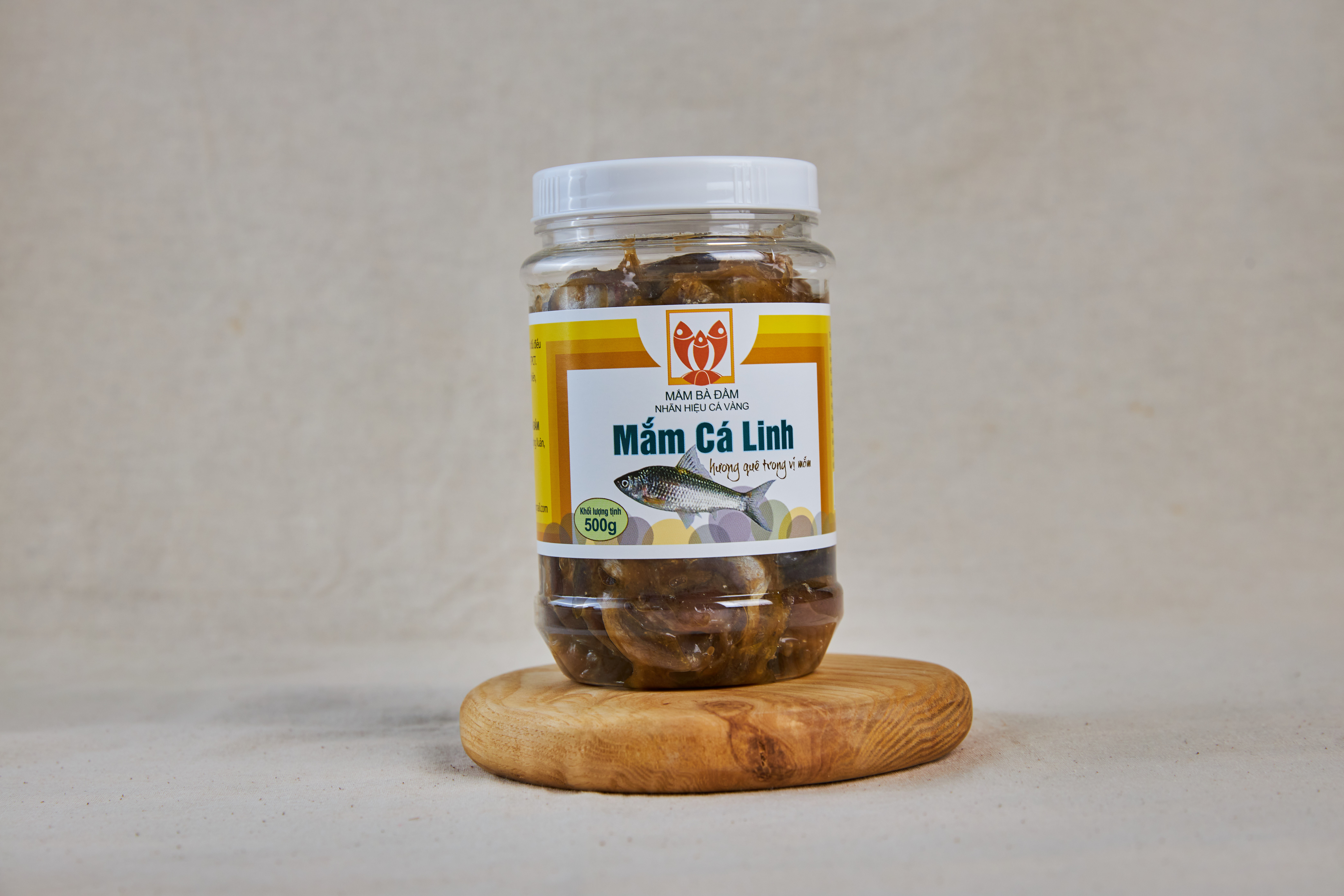 Thành phần: Cá linh (98%), nước, muối, đường, thính gạo rang, chất tạo màu (110).