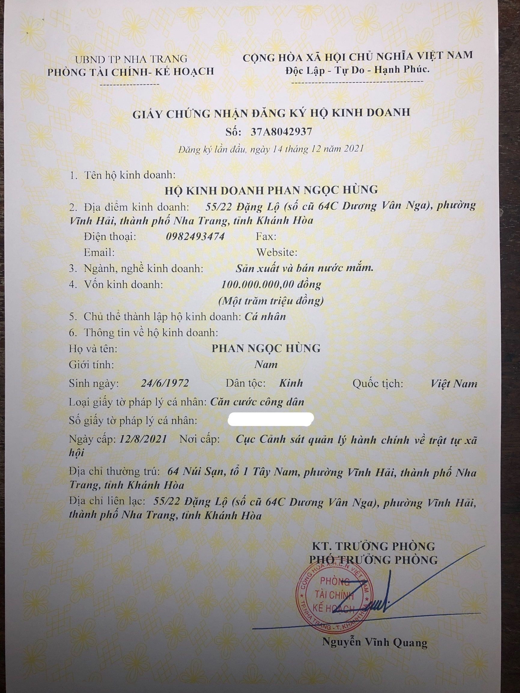 | Tên đơn vị/tổ chức chịu trách nhiệm về hàng hóa | Hộ Kinh doanh Phan Ngọc Hùng |