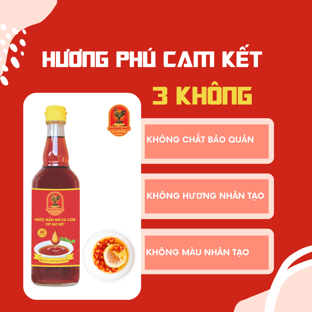 Nước mắm nhĩ cá cơm Hương Phú 40 độ đạm 510ml - truyền thống, thơm ngon chuân vị, loại đặc biệt được sản xuất theo quy trình khép kín, đảm bảo vệ sinh an toàn thực phẩm.
