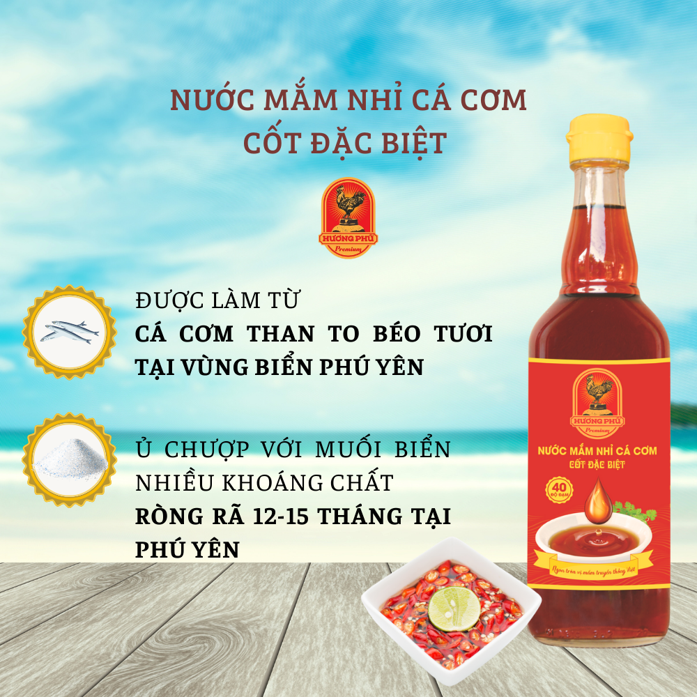 Nước mắm nhĩ cá cơm Hương Phú 40 độ đạm 510ml - truyền thống, thơm ngon chuẩn vị, loại đặc biệt