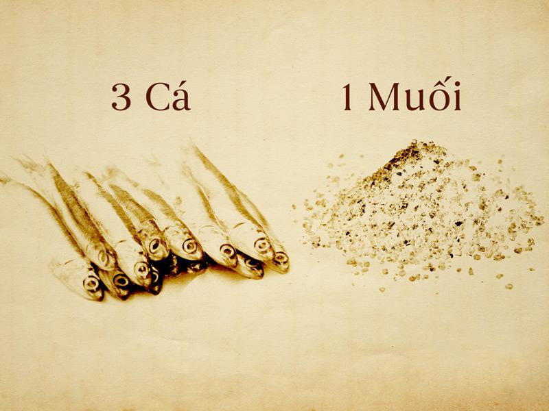 Bước 2: Trộn cá và muối theo tỷ lệ 3 cá: 1 muối: