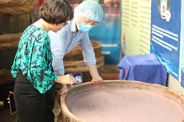 Sau 10-12 tháng, được chăm sóc tỉ mỉ, cẩn thận, sản phẩm mắm chín có mùi thơm bùi dịu nhẹ, hậu vị thanh và màu sim chin.