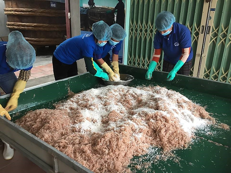 Mắm tôm được ủ trong thùng gỗ – lên men tự nhiên trong nhà tôn kín