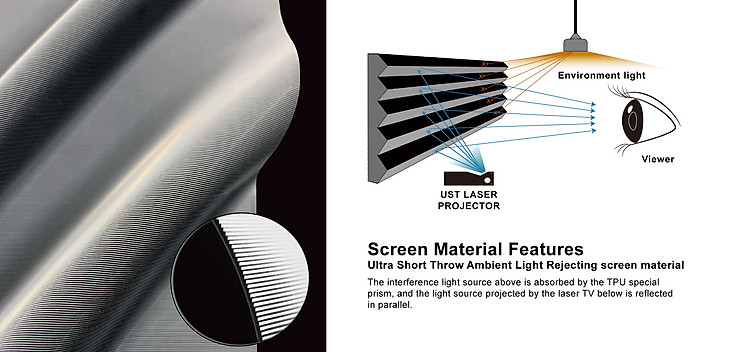 Màn chiếu quang học ALR UST để sàn Vividstorm VSDSTUST100H có mô tơ hoạt động êm ái, độ bền cao. Vải màn ALR UST cho góc nhìn siêu rộng lên tới 170 độ cùng công nghệ bảo vệ mắt vượt trội. Màn chiếu cũng được kết hợp mượt mà với máy chiếu, khi bật máy chiếu màn chiếu sẽ tự động mở ra còn khi tắt máy chiếu thì màn chiếu tự động thu lại. Chất liệu bề mặt ALR UST có cấu trúc răng cưa đặc biệt và bộ lọc loại bỏ ánh sáng đèn trần và ánh sáng xung quanh mang lại hiệu xuất hình ảnh tuyệt vời ngay cả khi căn phòng có nhiều ánh sáng.