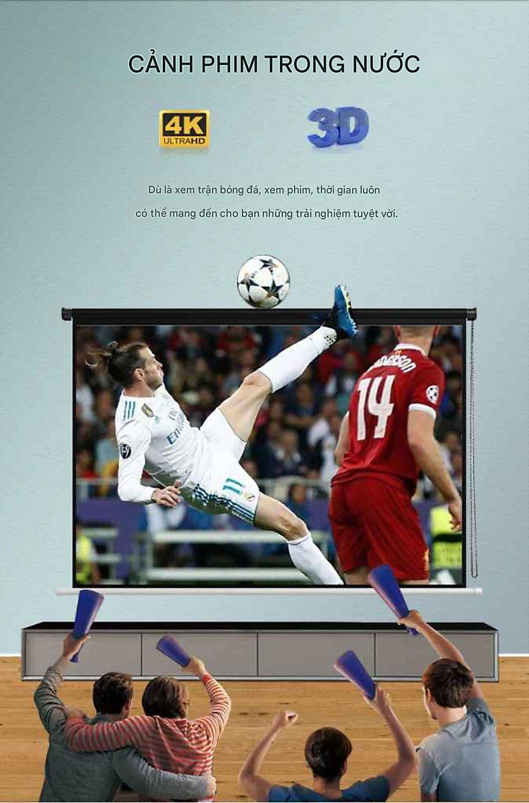 Xem phim, bóng đá tại nhà Dùng với máy chiếu mini / máy chiếu văn phòng Dạy học, họp nhóm, thuyết trình Setup phòng chill, quán cafe, sân vườn