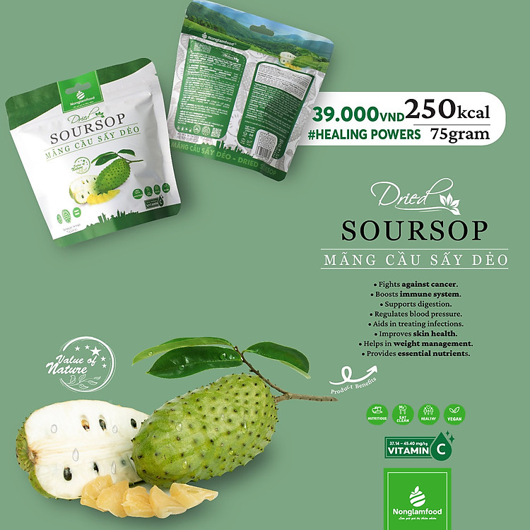 Tên sản phẩm: Mãng Cầu Sấy Dẻo Nonglamfood túi 75g
