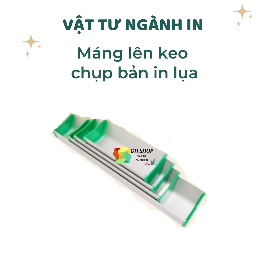 Máng lên keo in lụa là một dụng cụ rất quan trọng phục vụ trong quá trình chụp bản in lụa, máng lên keo giúp bạn có được lớp keo trên bề mặt lưới sẽ ảnh hưởng lớn đến phần tử in. Nếu bạn sử dụng loại máng lên keo chất lượng thì việc lên keo sẽ dễ dàng và bề mặt keo phẳng không có vết khi chụp bản cho bản chụp sắc nét. Nên sử dụng loại máng phù hợp với kính thước khung cần lên keo