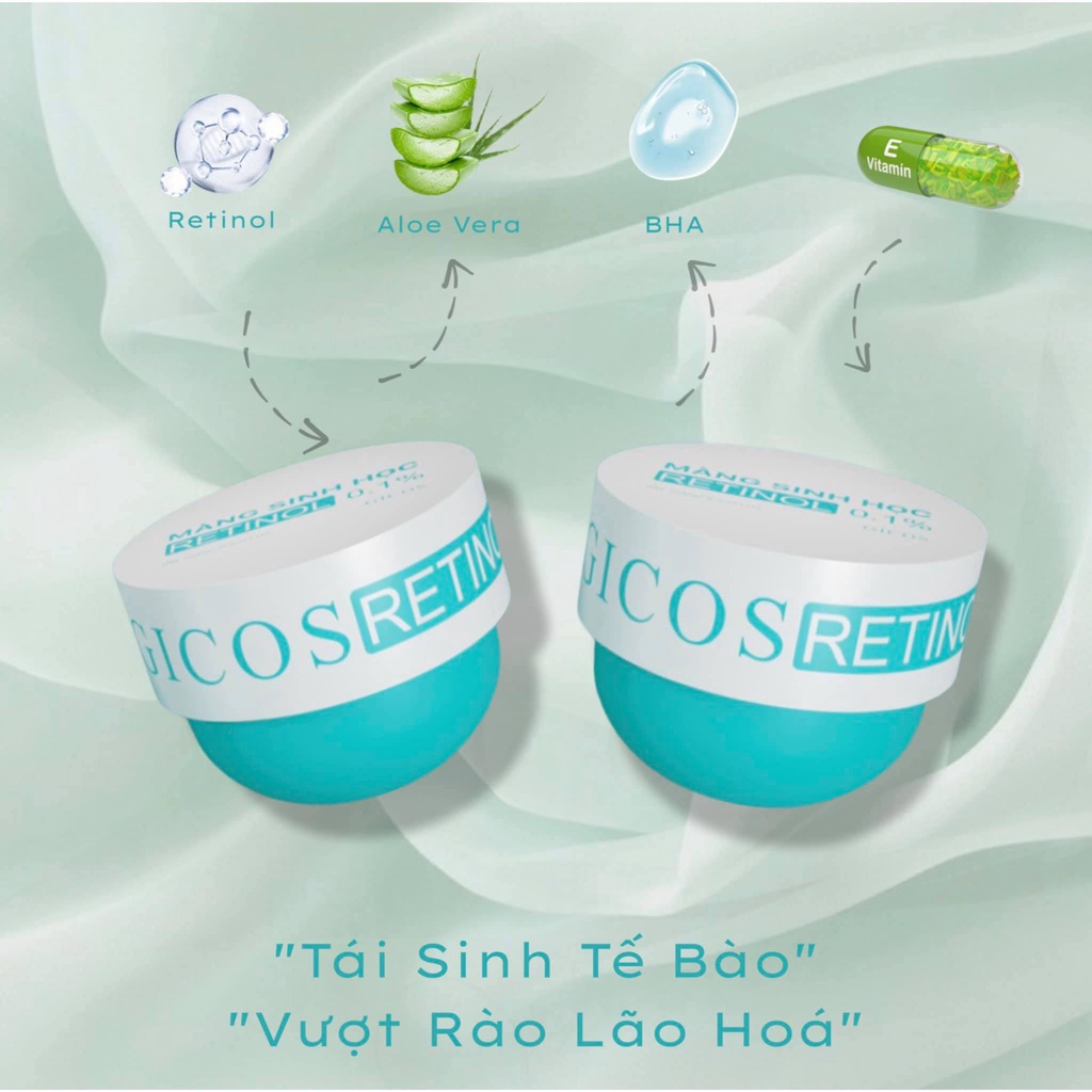 - Gicos màng sinh học retinol giảm nếp nhăn, chống lão hoá, cải thiện sắc tố, làm chậm quá trình phân huỷ collagen
