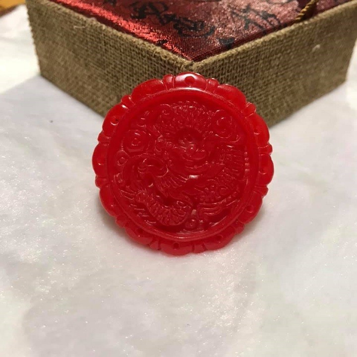 MẶT DÂY CHUYỀN HÌNH RỒNG MÀU ĐỎ TẶNG KÈM DÂY ĐEO