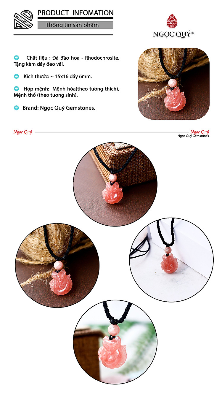 Giới thiệu Mặt dây chuyền hồ ly 9 đuôi đá đào hoa Rhodochrosite - Ngọc Quý Gemstones