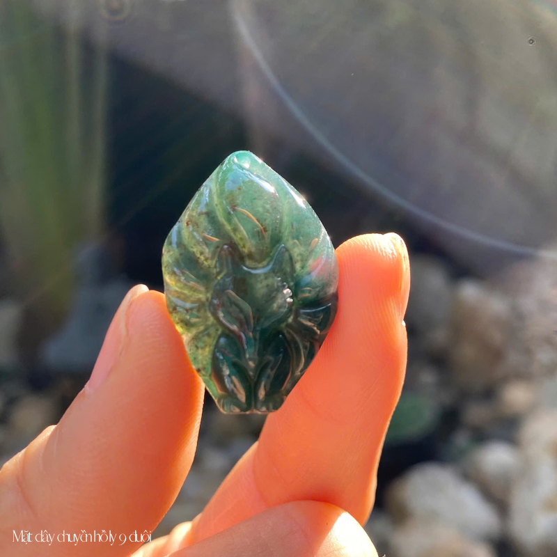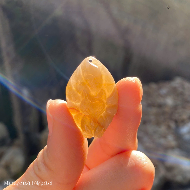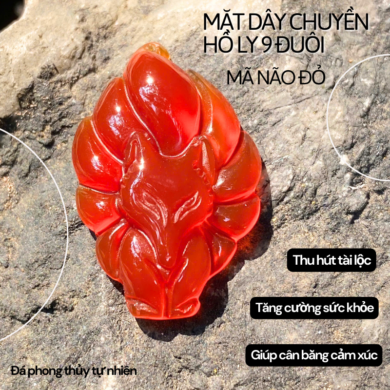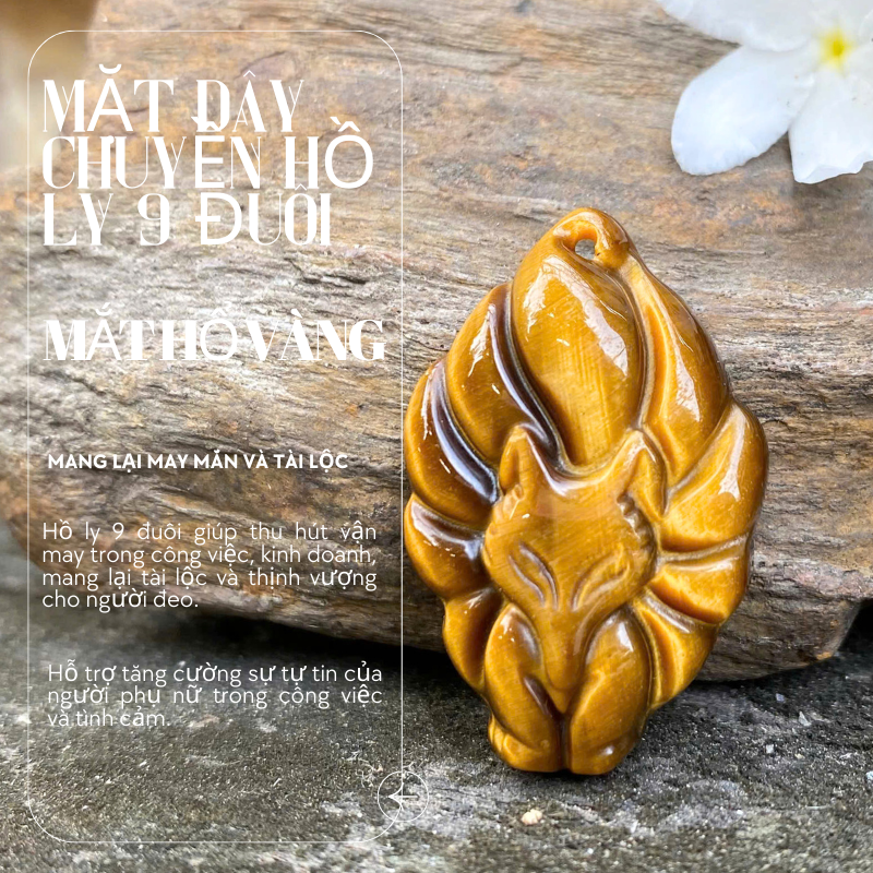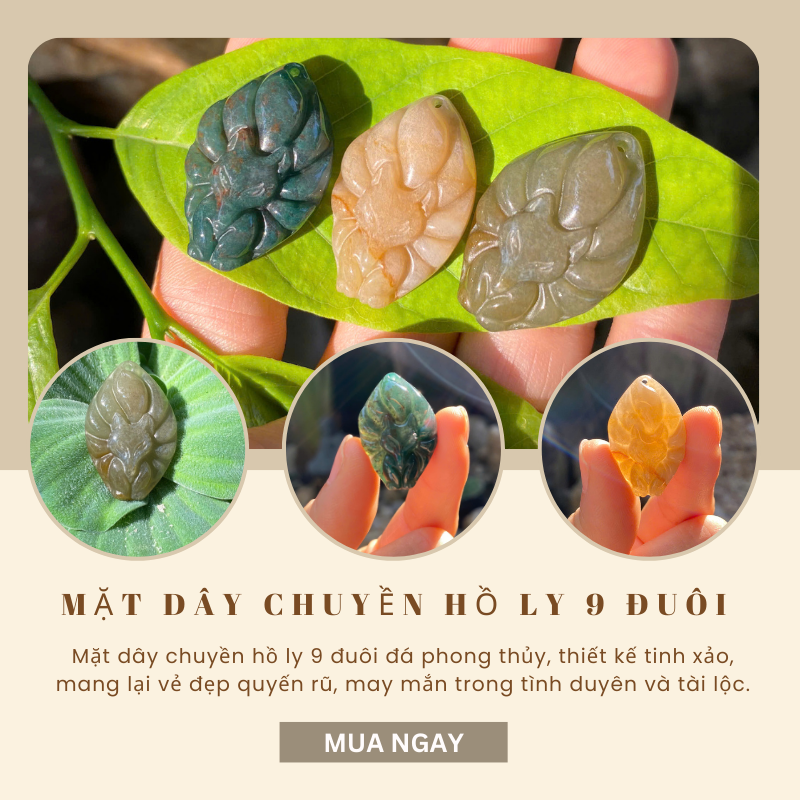 Mặt dây chuyền hồ ly 9 đuôi đá phong thủy, thiết kế tinh xảo, mang lại vẻ đẹp quyến rũ, may mắn trong tình duyên và tài lộc.