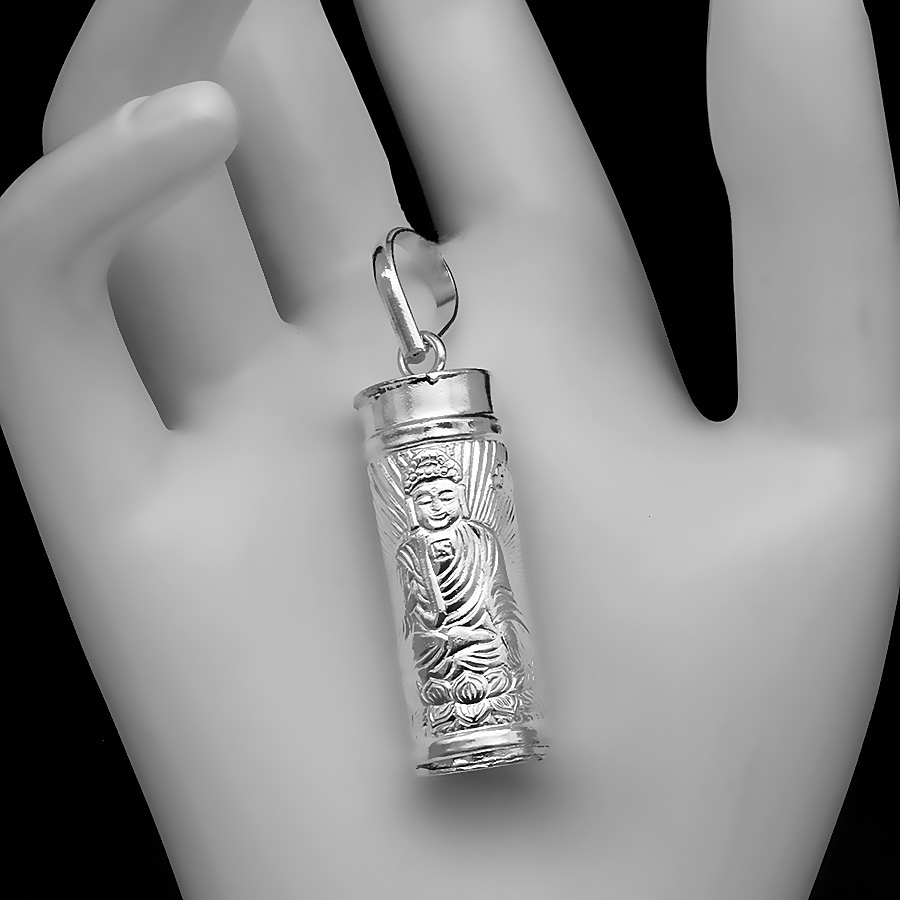 Giới thiệu Mặt Dây Chuyền Nam Và Nữ Đựng Bùa Hình Trụ Hoạt Tiết Phật Như Lai BẠC HIỂU MINH MDN023S