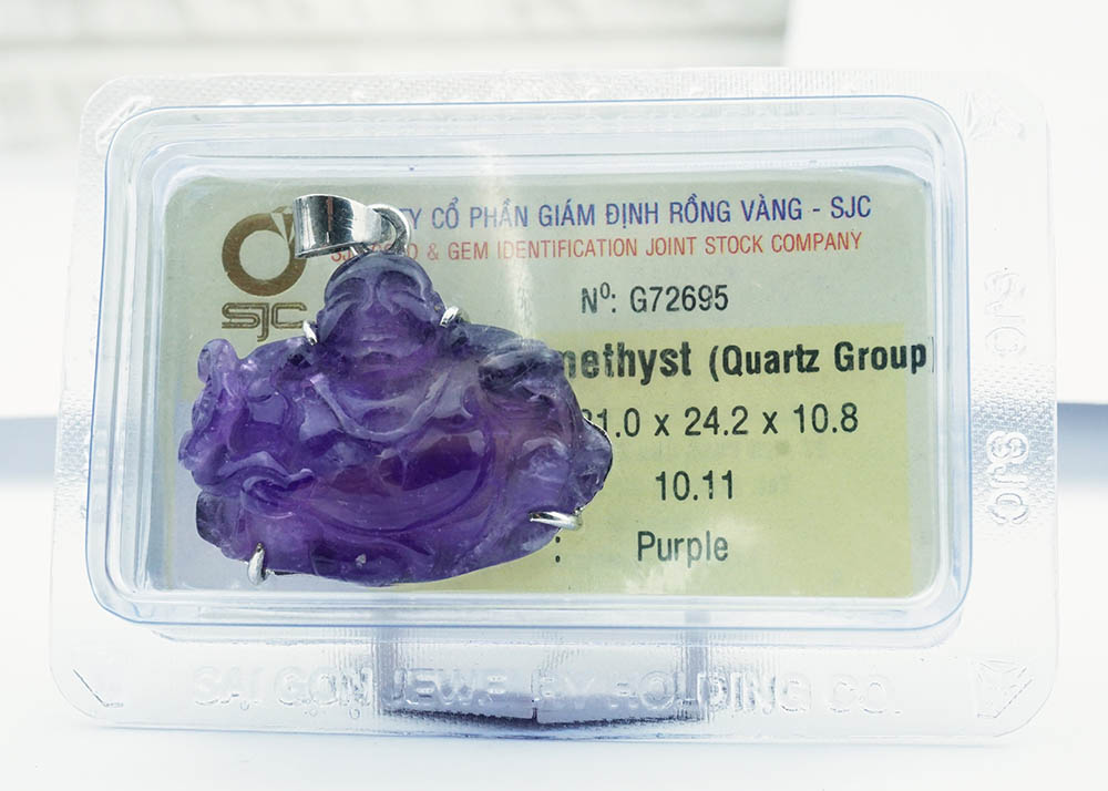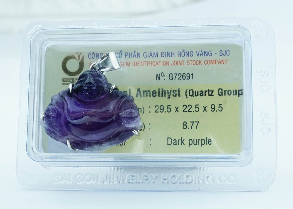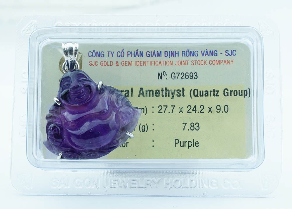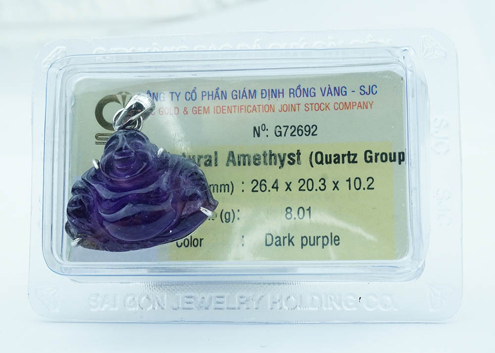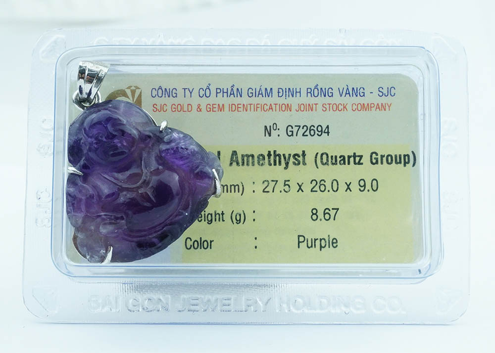 Chất liệu đá Amethyst (thạch anh Tím) tự nhiên, khoen bằng bạc, đã kiểm định bởi SJC.