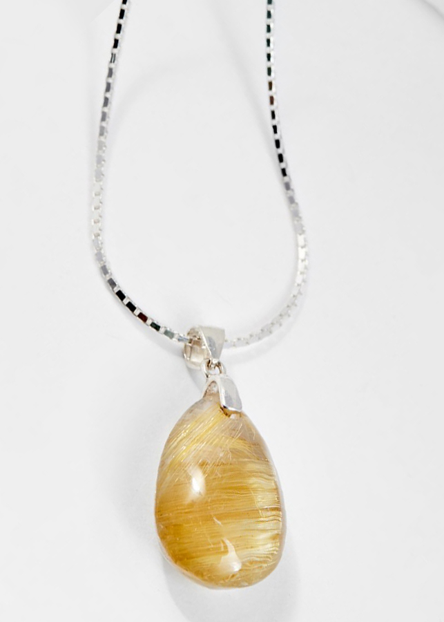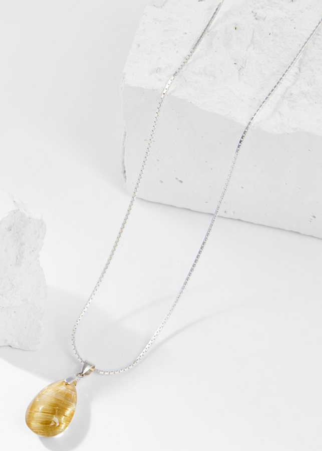 Từ lâu người ta đã biết đến đá thạch anh tóc vàng còn một tên khác là "Đá chiêu tài" - viên đá của người thành công giúp xua đuổi vận rủi, tinh thần sảng khoái và tập trụng để đưa ra quyết định đúng đắn thuận lợi trên con đường thanh quan tiến chức của gia chủ. Mặt Dây Chuyền Phong Thủy Đá Thạch Anh Tóc Vàng Giọt Nước Tặng Dây Chuyền Bạc Mệnh Thổ, Kim được làm từ đá thạch anh tóc vàng và hành động đeo trang sức đá thạch anh tóc vàng chứng tỏ bạn yêu quý bản thân và sức khỏe của mình.