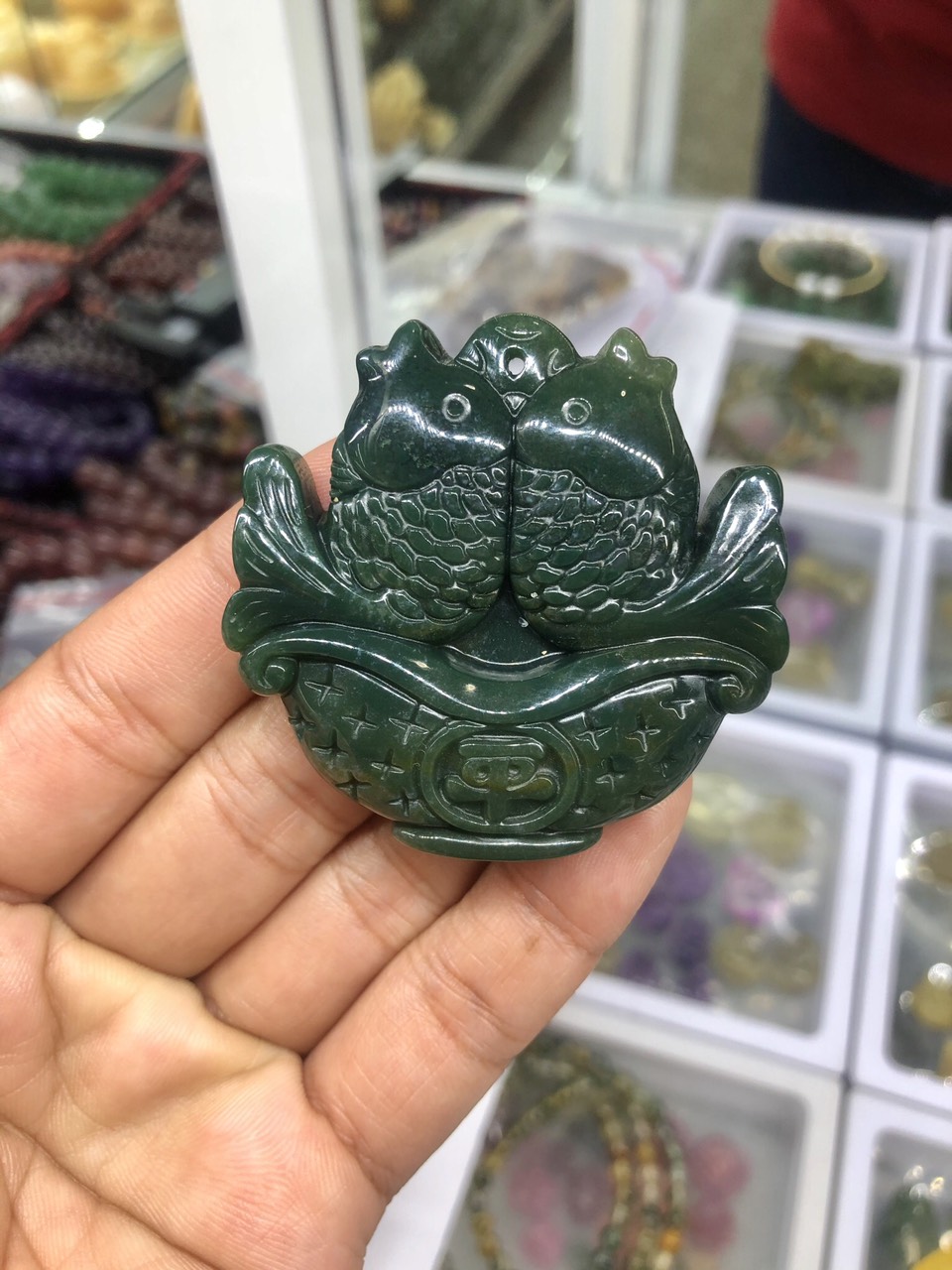 Trong phong thuỷ, cá là biểu tượng tuyệt vời tiêu biểu cho sự thịnh vượng, thuận hoà và hạnh phúc trong hôn nhân. Mặt dây chuyền song ngư không những tượng trưng cho hạnh phúc nhân đôi mà còn hàm ý niềm vui sum họp giữa người yêu, vợ chồng.