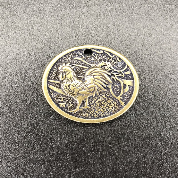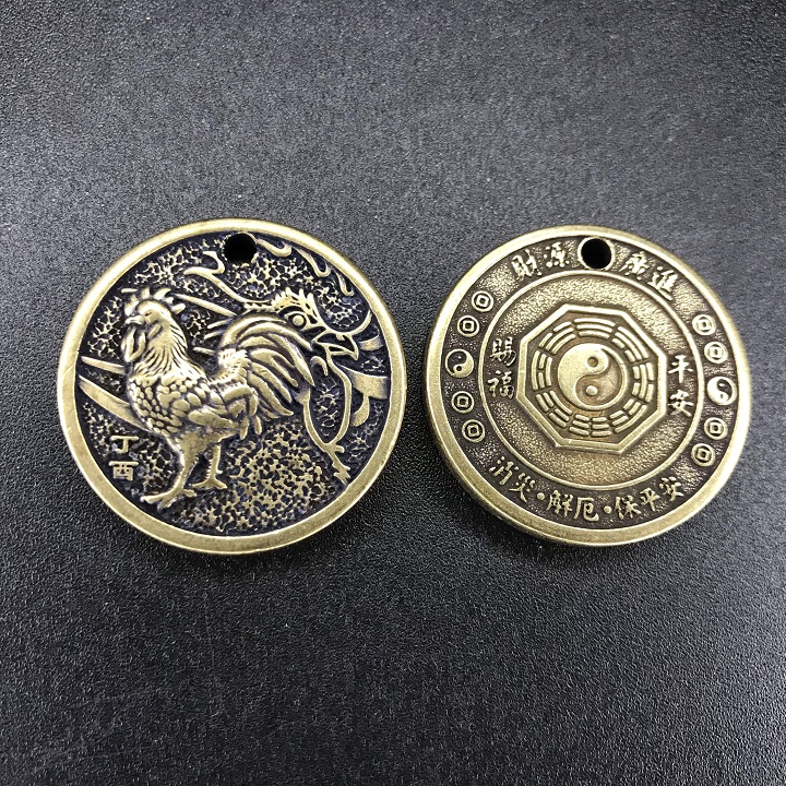 | Mô tả sản phẩm | Mặt đồng xu đồng hình con Gà là một mặt đồng xu bằng đồng, với mặt trước là hình con gà, mặt sau là hình bát quái cùng các chữ tiếng Trung. Trên đồng xu cũng đã được khoét một lỗ nhỏ để có thể xỏ móc khóa vào hoặc luồn dây để đeo. |