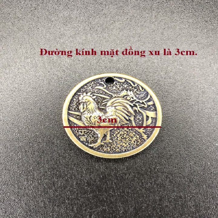 | Đặc Điểm Nổi Bật | Mặt đồng xu đồng hình con Gà là một mặt đồng xu bằng đồng, đường kính 3cm, mối chi tiết trên đồng xu được chạm khắc chi tiết, tinh xảo. Mặt đồng xu phù hợp với những người có năm tuổi tương đồng, dùng để cầu thêm may mắn, được những đức tính tốt của linh vật. Đồng thời tăng thêm tính thẩm mỹ, thời trang vì sự độc đáo trong màu sắc, khắc hình. Mặt đồng xu cũng thích hợp để làm quà dành tặng người thân và bạn bè. |