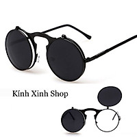 Kính Râm, Kính Mát Nam Nữ Mắt Tròn 2 Tròng Mở Nắp 2in1 Gọng Kim Loại Cao Cấp