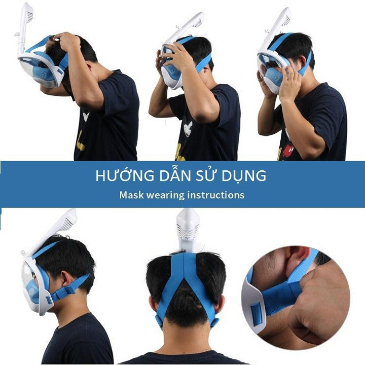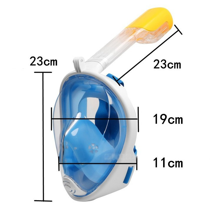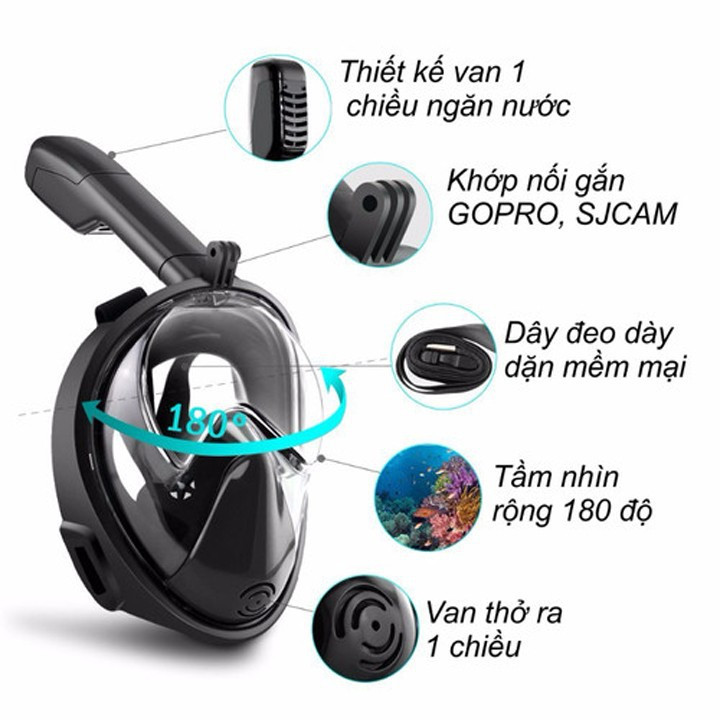 - Khác với các sản phẩm cùng loại chỉ che được từ phần mắt xuống mũi, chiếc mặt nạ bơi lặn này vừa vặn gần như toàn bộ khuôn mặt người dùng, nên sẽ ngăn được nước biển vào miệng, tránh gây ra cảm giác đau rát họng, khó chịu và buồn nôn, nhờ đó người dùng sẽ có thêm thời gian lặn lâu hơn.